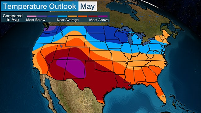 May Outlook Has Cooler Changes in the North, Hotter Changes in the South