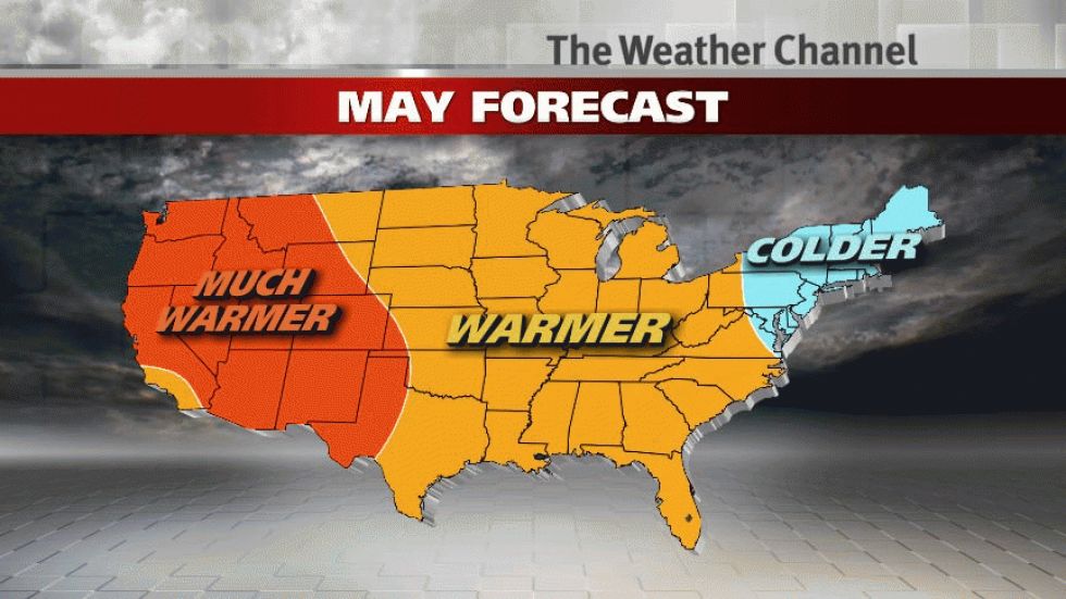 May - Only the Northeast is forecast to see below-average temperatures. Meanwhile, much of the western region will see temperatures well above average.