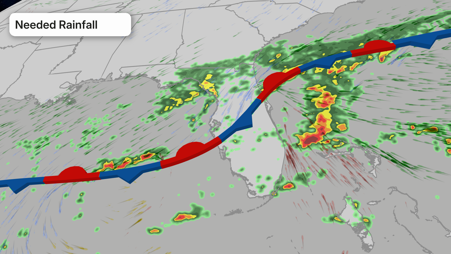 Across the southern portion of the state, including Miami, totals of 1-3 inches are expected. The northern part of the state, including Jacksonville, and the Florida Panhandle, including Tallahassee, could see around an inch.