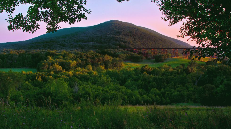 A famous train trestle that is over 100 years old in upstate New York.