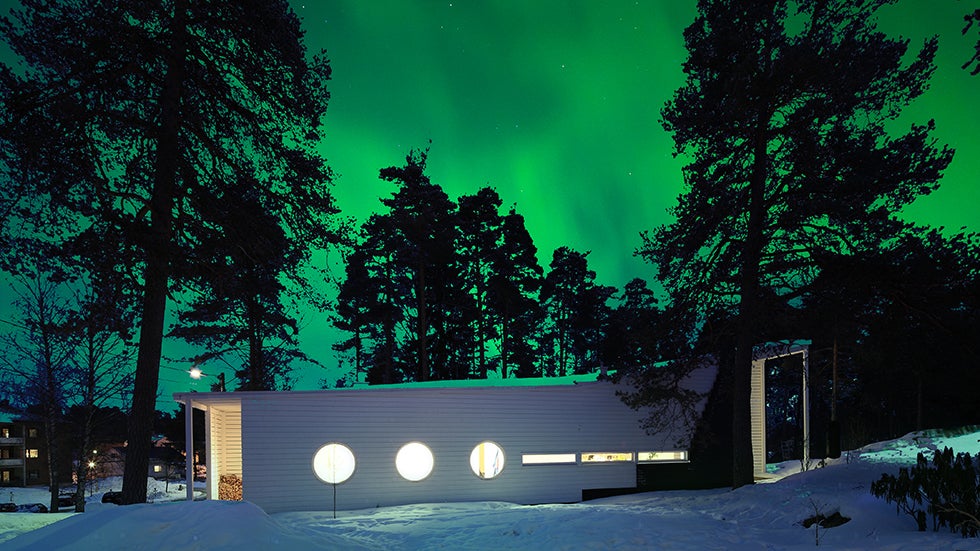 The Northern Lights sparkle above the Apelle house in southern Finland by architect Marco Casagrande. (Image: Marco Casagrande)