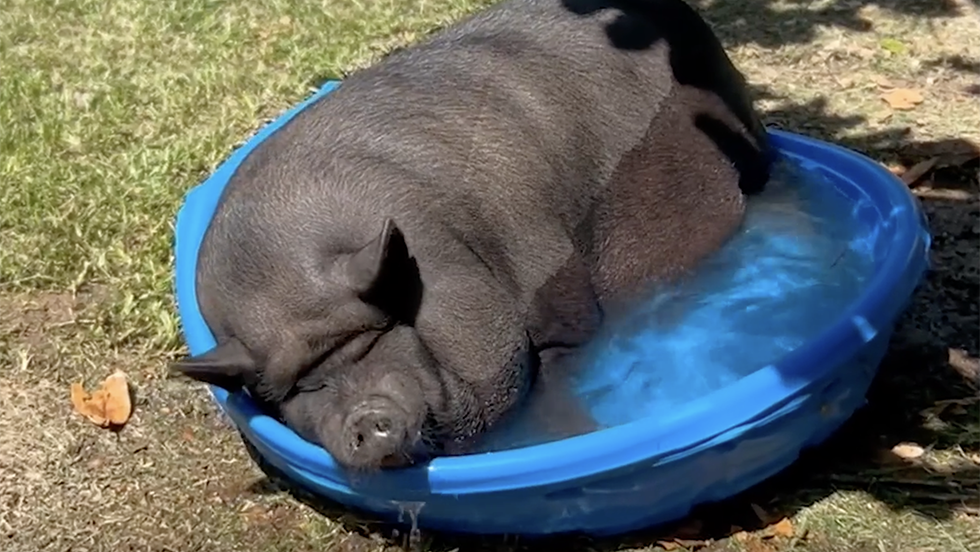 A pet pig in Columbus, Mississippi, went for a dip in a baby pool on a 95-degree day in June.
