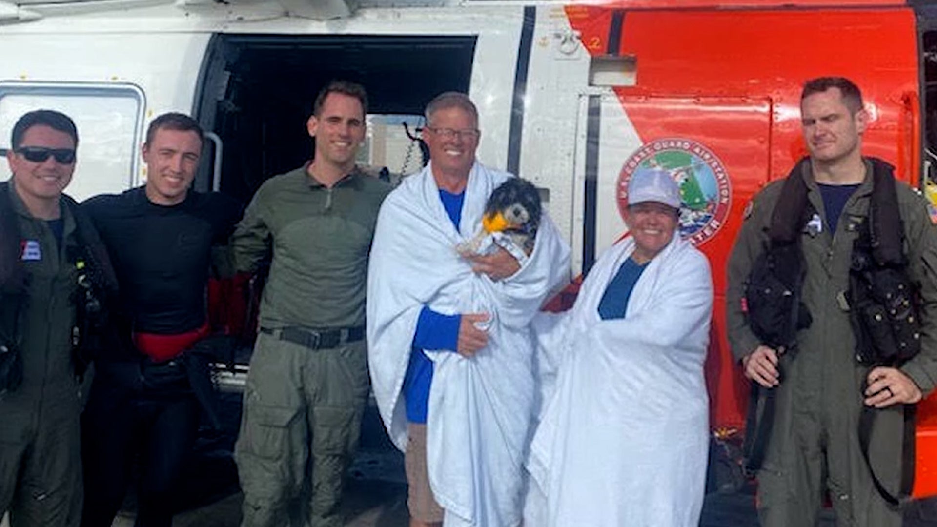 Watch: Helicopter Rescues Couple & Dog