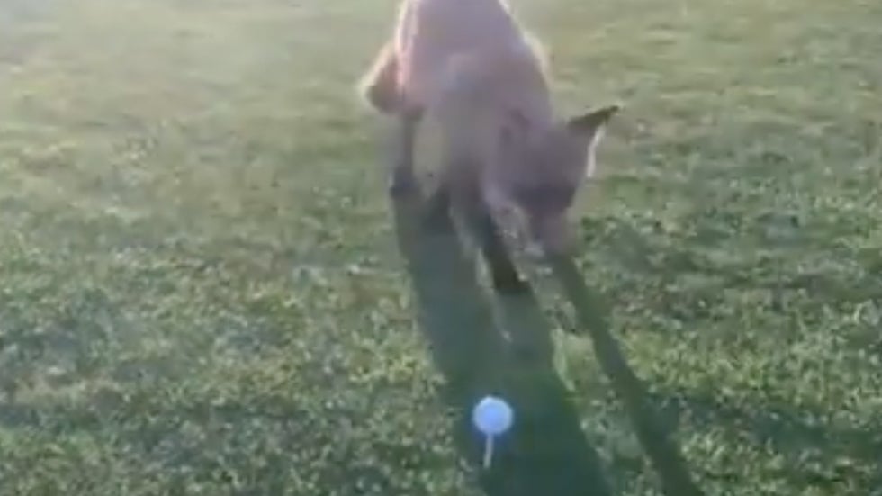 A brave fox walked up to a golfer in Sweden and grabbed ball right off the tee.