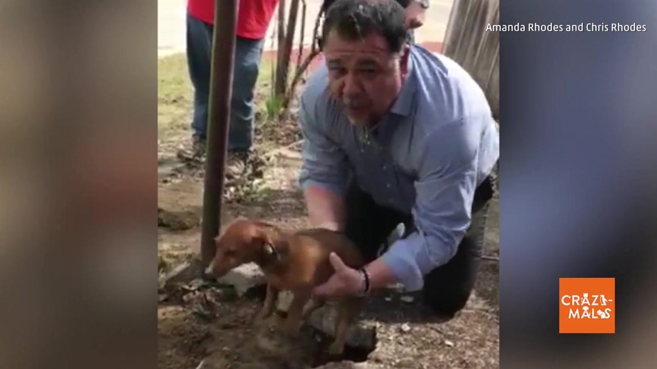 City workers in Hannibal, Missouri dug through concrete to rescue a dachshund who got caught under a sidewalk while exploring a groundhog hole.