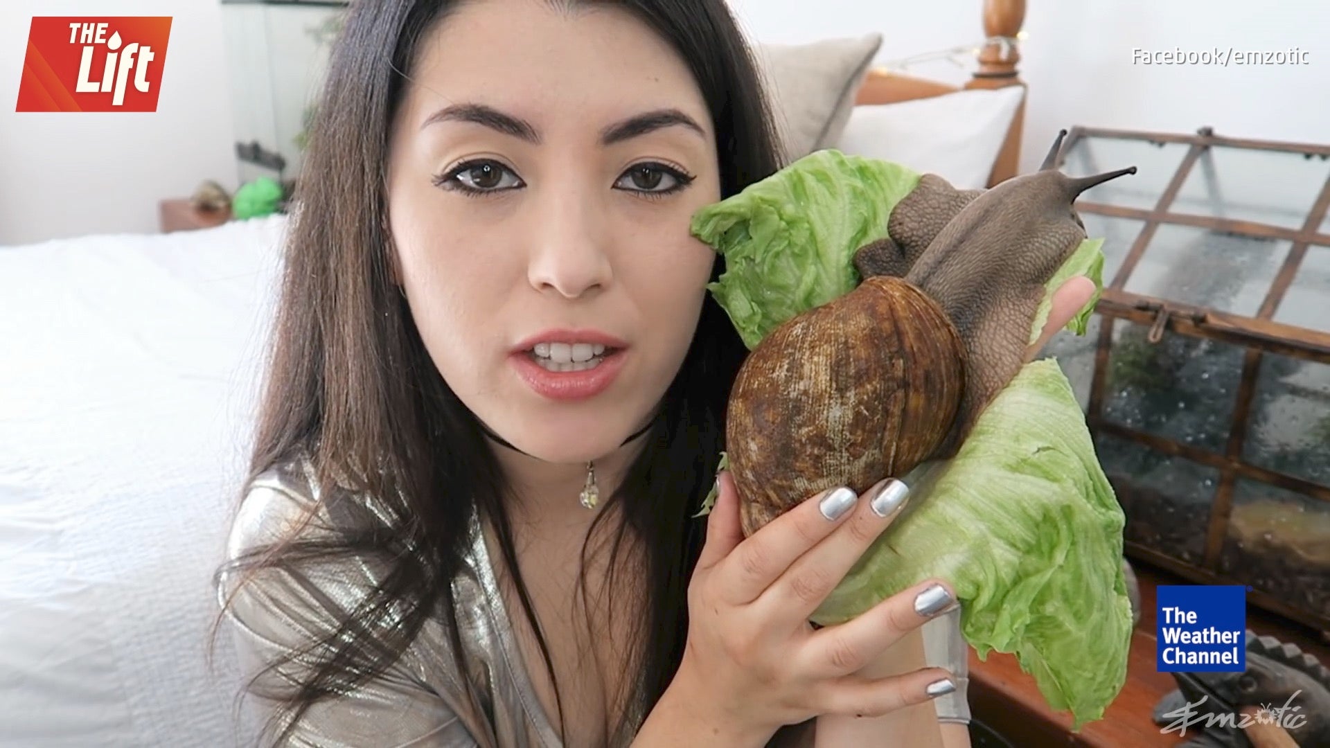 A woman has giant African land snail as a pet.