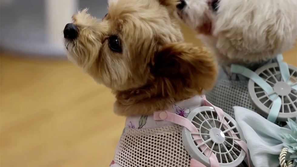 A Japanese clothing maker has come up with a wearable fan to help dogs and cats keep cool in the summer heat.