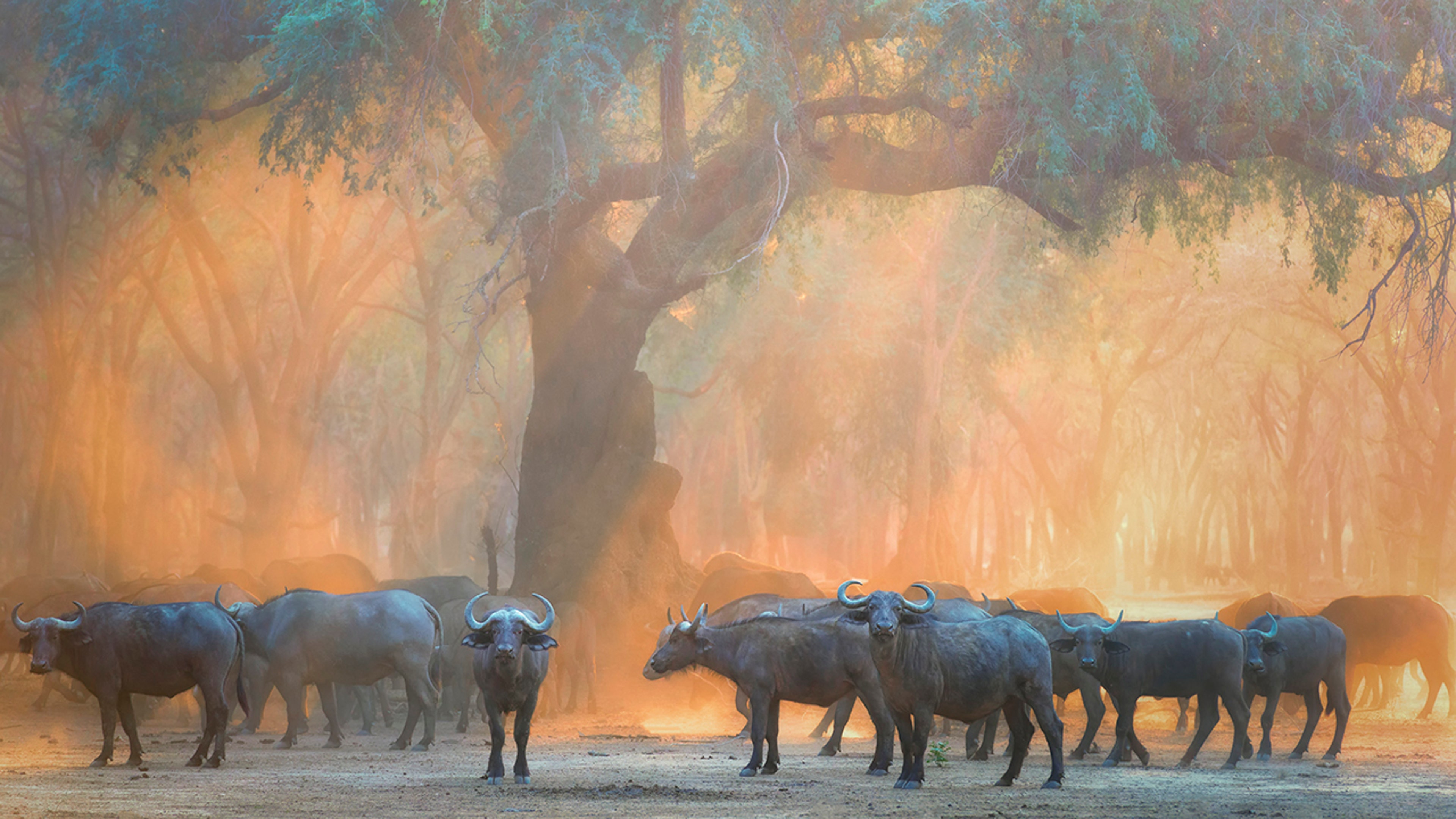 "We knew that this buffalo herd frequented the area, and that they would typically bed down for the night in this forest," the photographer told weather.com. "Then, in the early morning, they'd start making their way out of the forest to start grazing at the watering holes. The previous day we saw that it was just an amazing sunrise; all the dust that was kicked up by this herd of buffalo created this great effect."