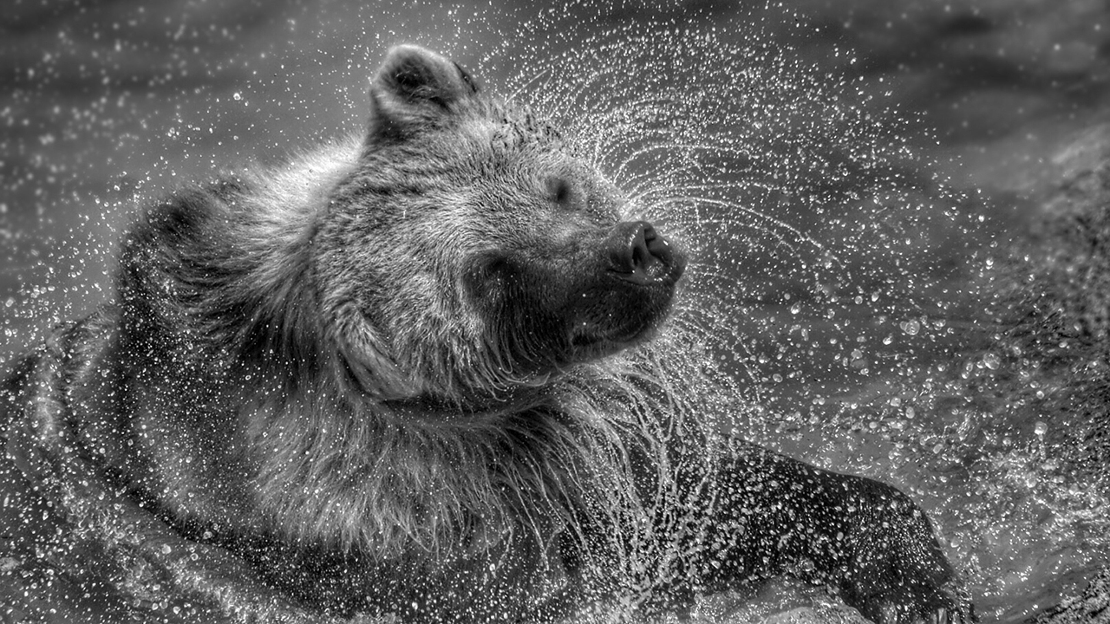 “Tiny,” a rescued brown bear, dries off at the Wild Animal Sanctuary in Keenesburg, Colo. (Bary and Athena Burns)