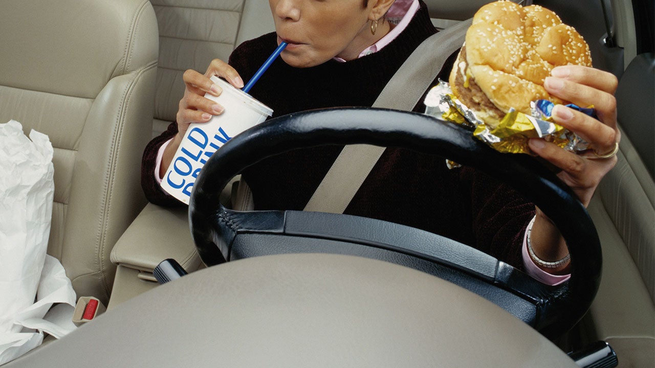 Didn't have time to eat breakfast before leaving for work? If grabbing a bite to eat while you drive to the office is your solution, you're not alone: 50 percent of people admitted to eating while driving, tying it with talking on the phone for the second most popular habit drivers engage in. As with most of the multi-tasking habits drivers have, those under 35 are more likely to chow down in their car -- 56 percent, comparaed to 47 percent over 35 who admitted to eating while driving.