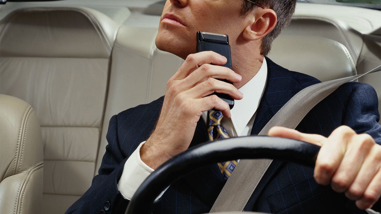 Just when you thought you were done reading about people primping on the road, five percent of survey responders said they've shaved from time to time while driving. Even a one-handed activity like this man using an electric razor can distract drivers from the task at hand (which, for the record, is driving).