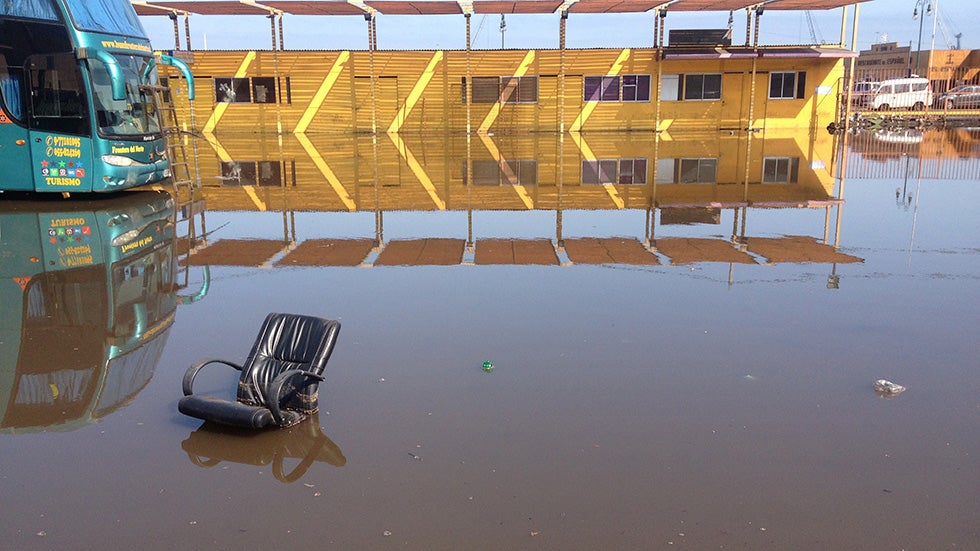 Part of a chair floats in a flooded area of Iquique, northern Chile, on April 2, 2014 after a powerful 8.2-magnitude earthquake hit off Chile's Pacific coast. (Aldo Solimano/AFP/Getty Images)