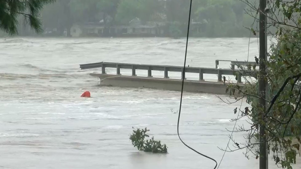 Severe flooding causes the FM2900 bridge over the Llano River in Kingsland, Texas, to collapse.