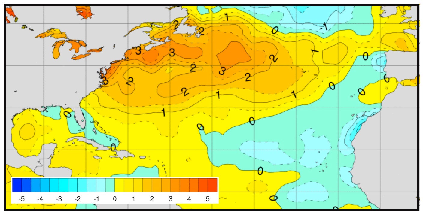 As it heads toward the U.S. East Coast, Florence will be moving across waters that are 1 - 2 degrees Celsius (3 - 4 degrees Fahrenheit) warmer than average for this time of year.