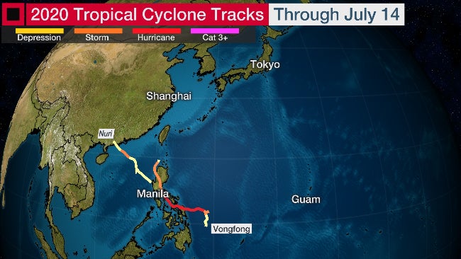 2020 Western Pacific named storm tracks through July 14.