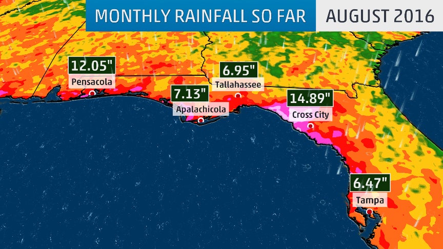 August 2016 rainfall along the northeast Gulf Coast through August 25, 2016.