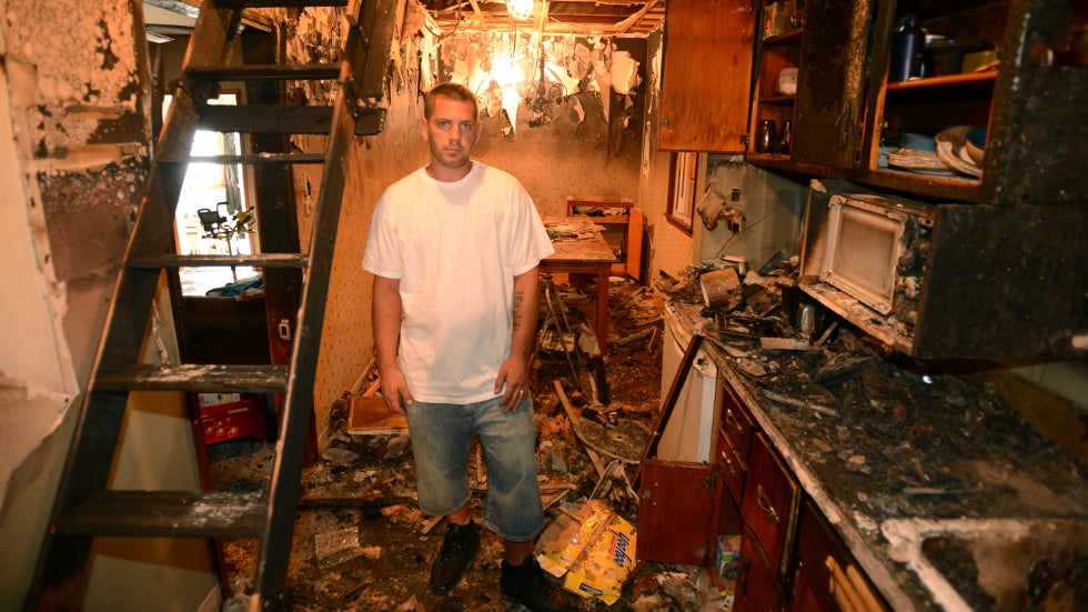 Pete Vadola stands in his burned out house in Staten Island, which was destroyed by a fire on July 20, 2013. (Mark Bonifacio/NY Daily News via Getty Images)