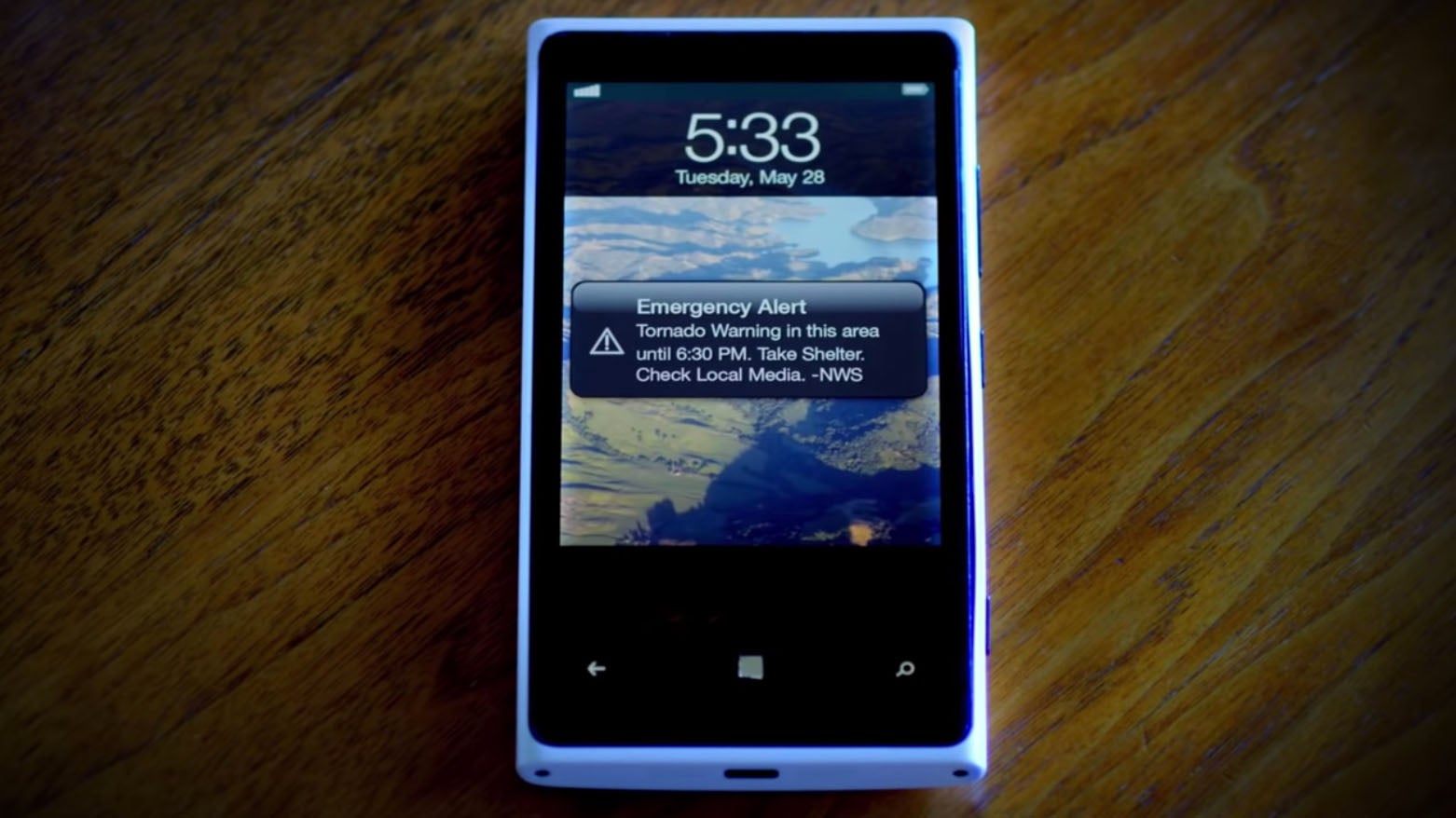 An example of an NWS wireless emergency alert (WEA) on a smartphone.