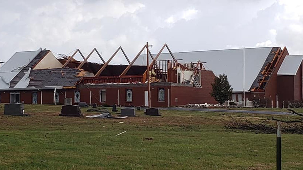The roof was ripped off the Mount Zion Baptist Church in West Paducah, Kentucky, when it was struck by a tornado shortly before 9:30 a.m. on Thursday, March 14, 2019. No one was injured. (Mount Zion Baptist Church/Facebook)