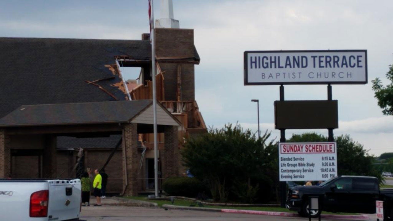 Aerial footage from NBCDFW.com showed the church's roof slashed open in several places.