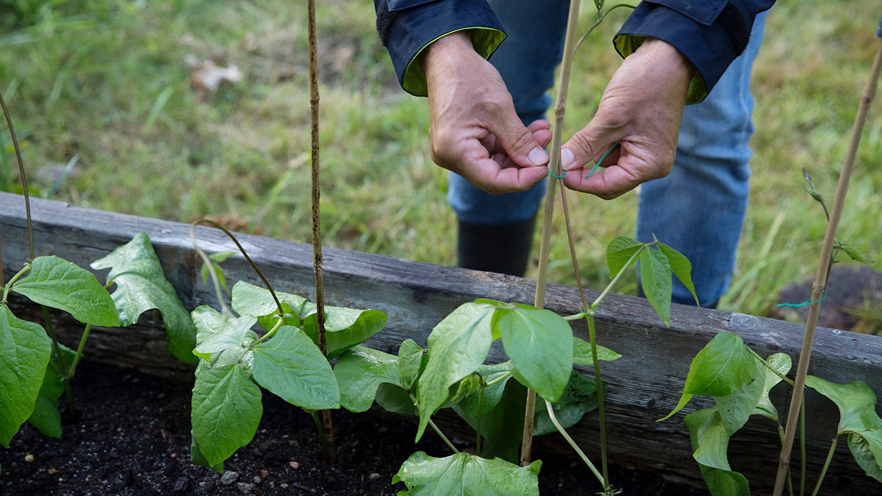 Cut Christmas tree branches from your tree, remove all the needles, trim the branches down, and use them as support sticks for the legume shoots in your garden. Legumes are “thigmotropic,” which means that they grow in a particular direction when they come into contact with an object and respond to it. They often need supports or frames when growing so that they can climb upwards toward light. Christmas tree branches are perfect for this job because they have lots of texture, knobs and twigs for peas and beans to latch on to as they grow.