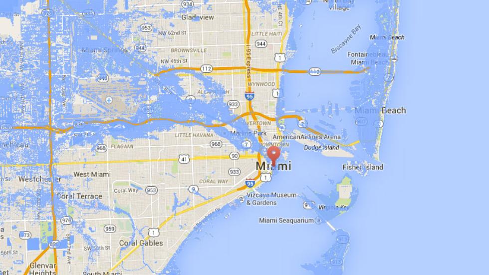 What parts of Miami would look like with a 6-foot rise in sea level.