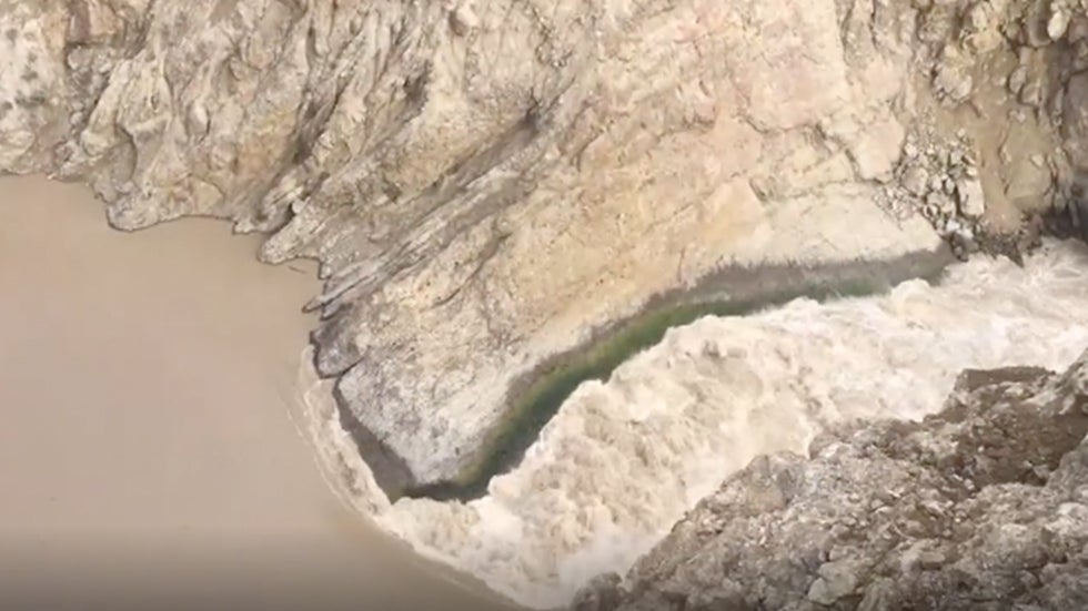 The Big Bar Landslide and resulting 16-ft. waterfall.