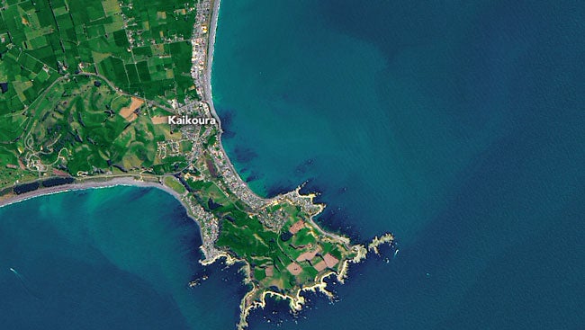 The satellite image above shows the Kaikoura coast before a massive 7.8 magnitude earthquake hit New Zealand in November, exposing new land.