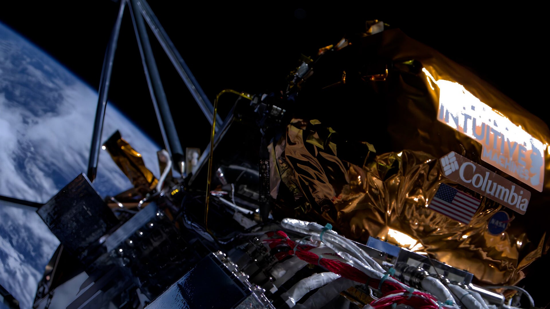 Intuitive Machines’ lunar lander captured photos of Earth as it continued its journey toward the moon.