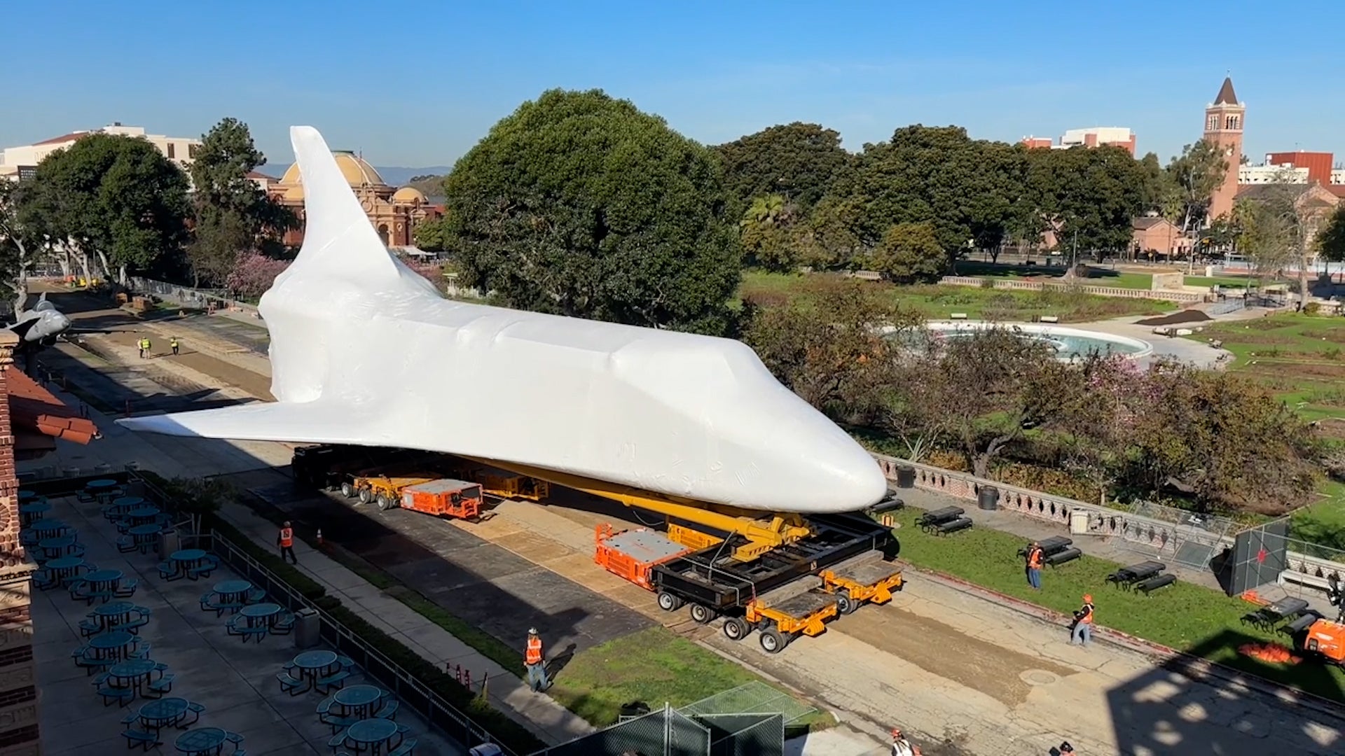 The space shuttle Endeavour was carefully set into place at its new home at the California Science Center.