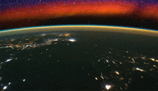 Red, green, purple and yellow swaths of light — known as airglow — are seen in this video of Earth’s limb, shot from the International Space Station.