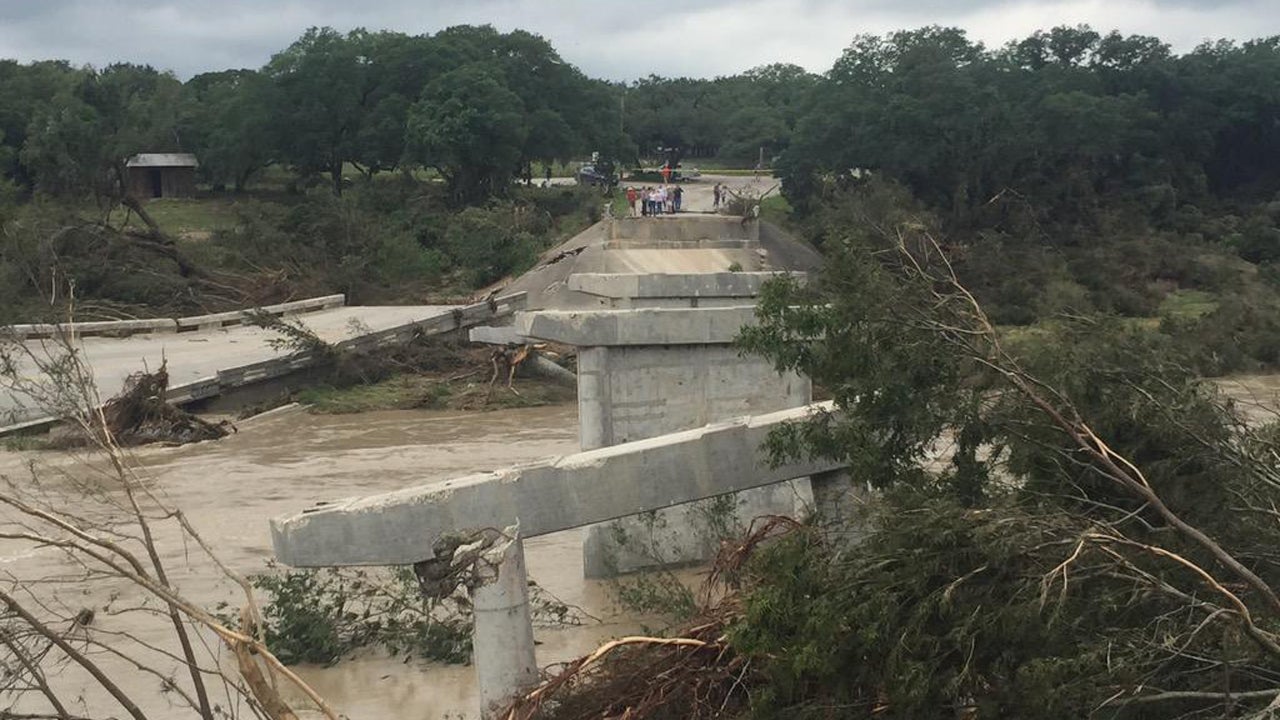 Damage to the Fischer Store Road bridge seen in Wimberley, Texas, on Sunday, May 24, 2015.