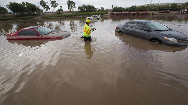 Heavy monsoon rains flooded I-10 at 43rd Ave. in Phoenix, Arizona, on September 8, 2014