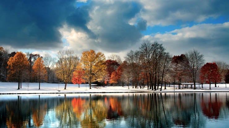 “This photo was captured in Munroe Falls, Ohio, on November 12, 2013. I have never before seen such a combination of elements and conditions. There was still plenty of fall color when this blanket of fresh snow arrived. I went directly to this beautiful lake at Munroe Falls Metro.”