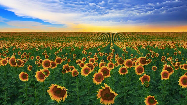 “I spent two summers to get this shot. This place is actually 200 miles from my house. The first summer (2011), I went to this place at least three times a week learning the place and the lighting, but no luck for me. I didn’t give up before I got my shot. Summer 2012 I promised myself to get the shot. I wanted it. Every single day I check The Weather Channel, and on July we had a lot of storms here in South Dakota. And finally I saw the amazingly beautiful clouds and great color contrast of sunflower fields. I think finally my waiting paid off.”