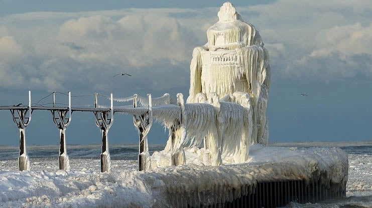 “Several days of strong winds and waves coat the St Joseph Lighthouse in a beautiful coating of ice.”
