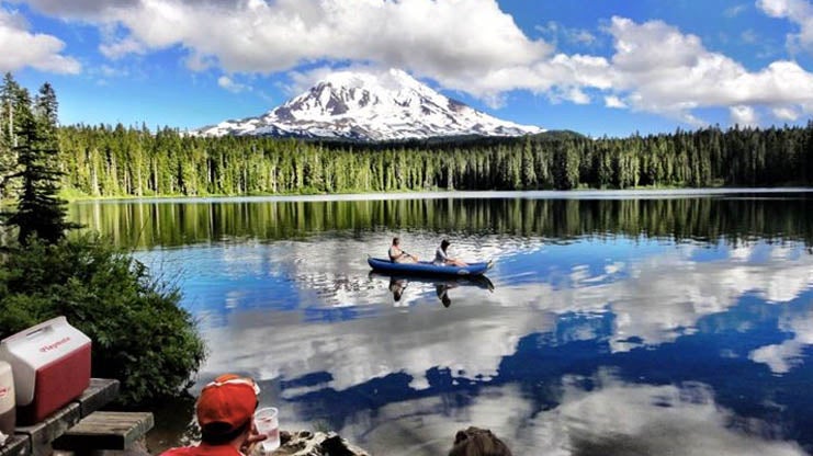 “A peaceful day on Takhlakh Lake in the middle of the Casecade Mountains. Mt. Adams looms in the background.”