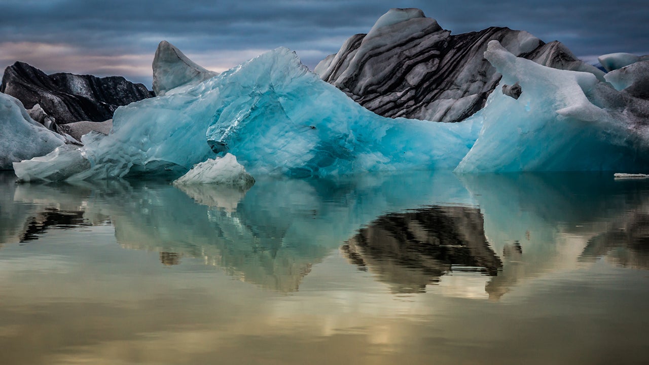 The sun sets to arrive at Jökulsárlón, Iceland. (Andrew Gibson/2015 Sony World Photography Awards)
