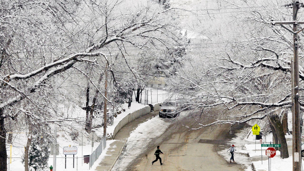 On Tuesday, the snowfall reached the Denver area, creating a mess on the city's roadways and canceling more than 350 flights. The storm pushed further east on Wednesday, shutting down roads and schools in the Dakotas.