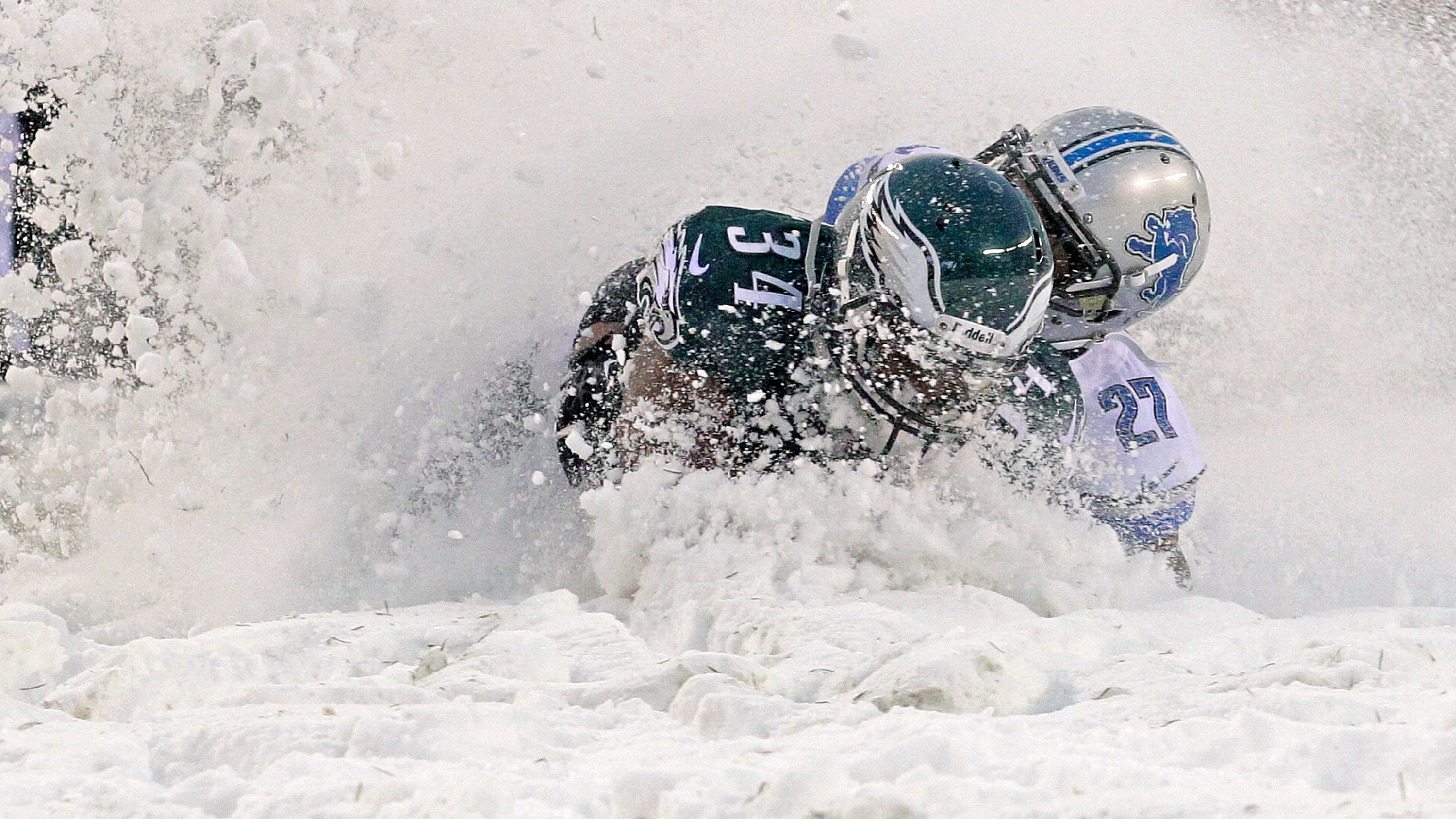 Forecasters had predicted some snow for the Week 14 matchup between the Lions and Eagles at Lincoln Financial Field in Philadelphia. But snow began falling two hours before kickoff, and it only got heavier throughout the game. By the end of the day, 8.6 inches of snow was recorded in the city on that December Sunday, which accounted for over 75% of the city’s snowfall for the entire month.