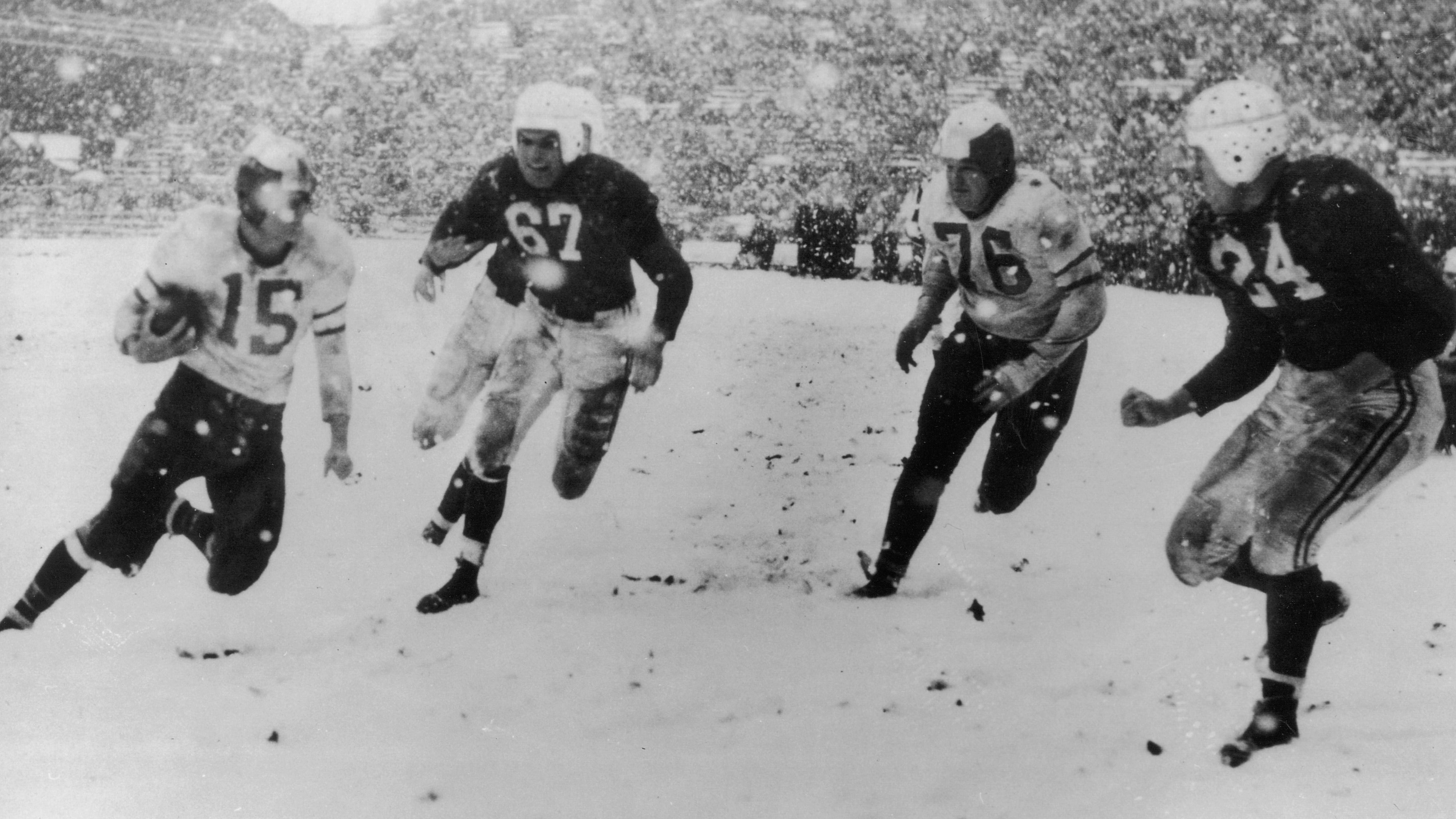 We are going way back in time for No. 7, all the way to the 1948 NFL Championship game at Shibe Park in Philadelphia between the Eagles and the Chicago Cardinals. It was marred by a heavy snowstorm, with 7 inches of snow falling during the game. The visibility was so bad that you could not see the goal posts from the 50-yard line because of the driving snow.