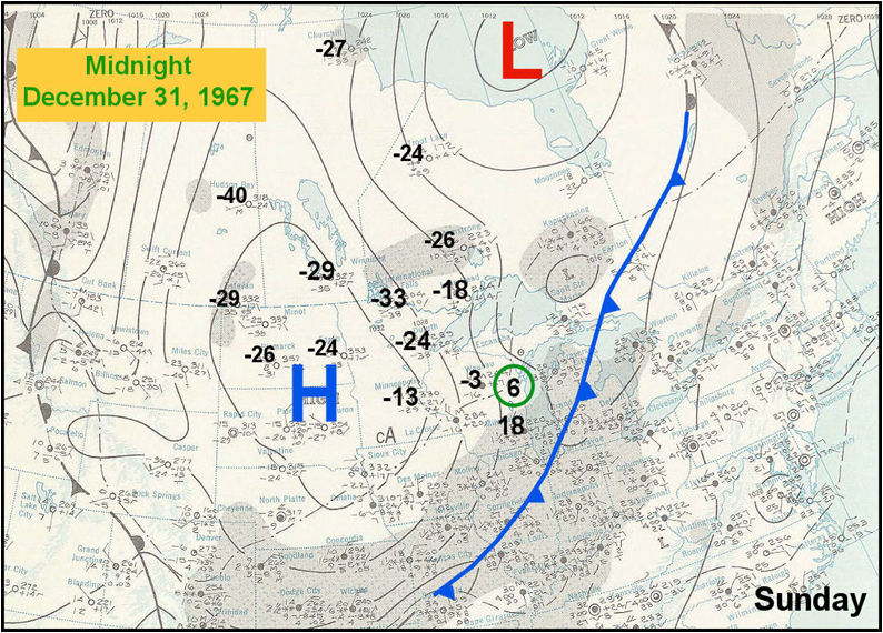 Surface weather chart on Dec. 31, 1967. Click the image for larger view.