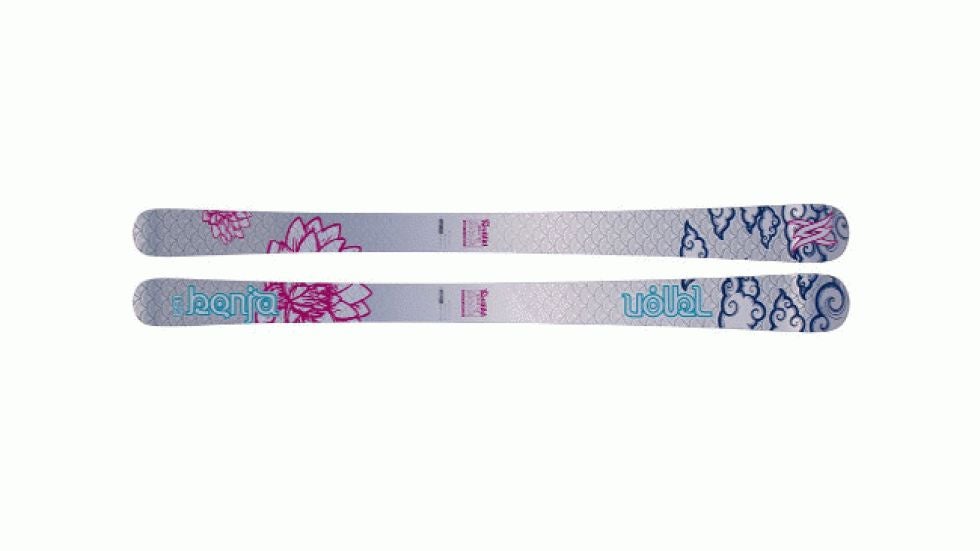 Last season Völkl added women-specific Bio-Logic technology to the venerable Kenja, designed to reduce leg stress and fatigue through a level stance, progressive sidecut (wide tip and narrow tail) and an ultra light wood core that’s stiffer in the front and softer in the tail. By adding tip rocker this season, however, the newly revamped 87 mm-waisted ski is even easier to turn and more oriented toward the one-ski quiver standard.