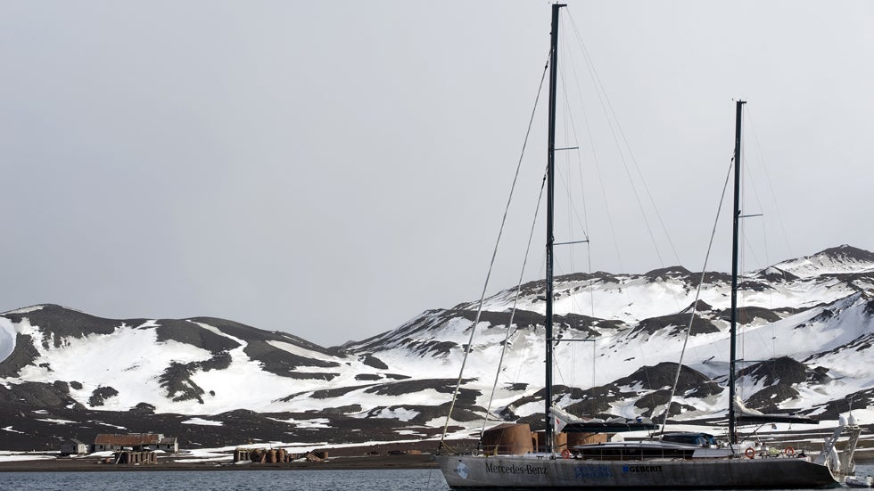 This Oct. 27, 2008 photo shows the sailboat 'Pangaea' anchored in the bay of Deception Island, Antarctica, during the Pangaea Expedition. The Pangaea Expedition is a global environmental project led by South African explorer Mike Horn. (MARTIN BUREAU/AFP/Getty Images)