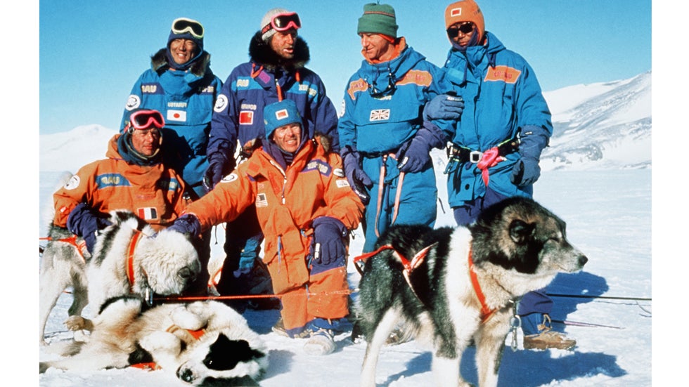 A photo dated Jan. 5, 1990 shows members of Jean-Louis Etienne's International TransAntartic expedition at the Admundsen-Scott US Base at the South Pole where they arrived Dec. 11, 1989. (AFP/AFP/Getty Images)