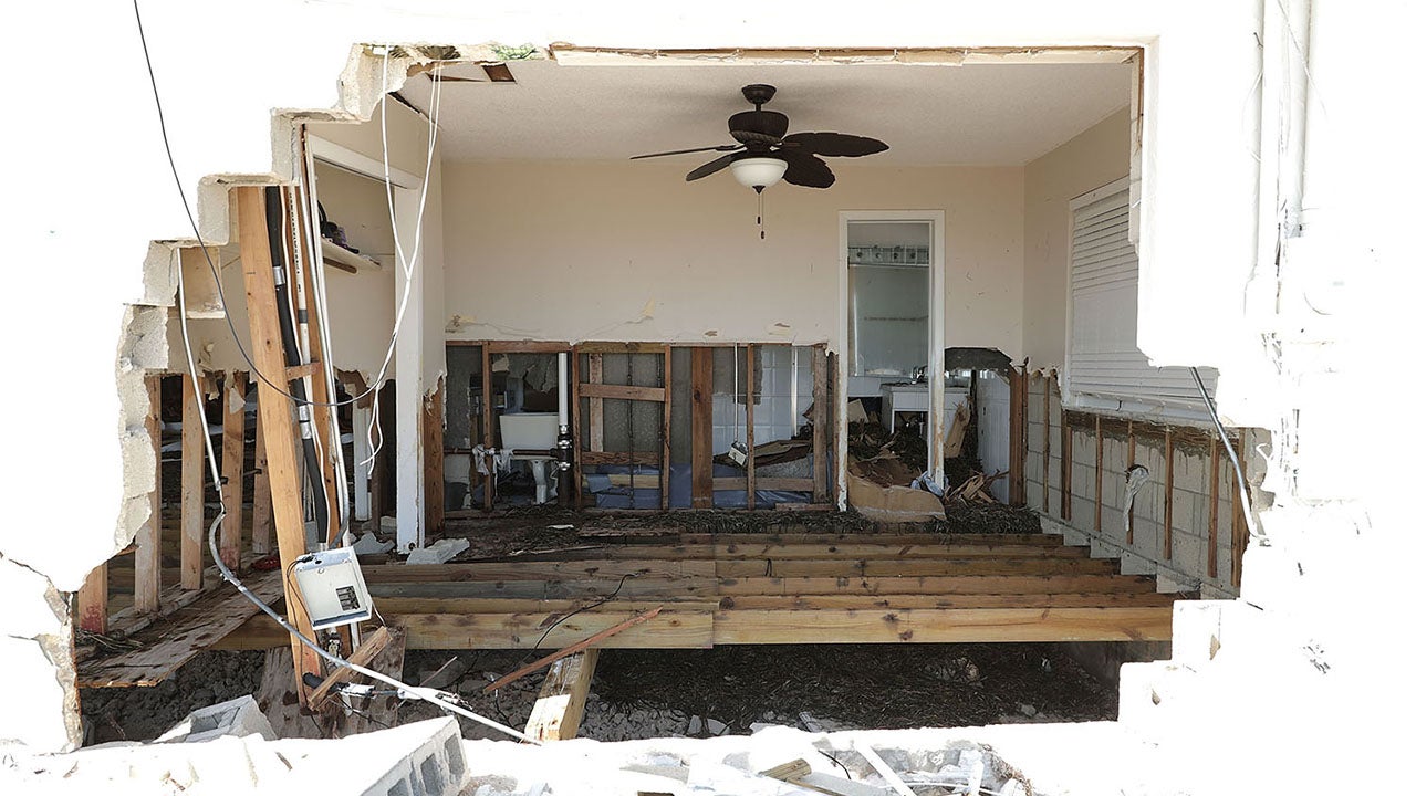 A waterfront home is left with a giant hole after being destroyed by Hurricane Irma on September 12, 2017 in Marathon, Florida. The Federal Emergency Management Agency has reported that 25-percent of all homes in the Florida Keys were destroyed and 65-percent sustained major damage when they took a direct hit from Hurricane Irma.