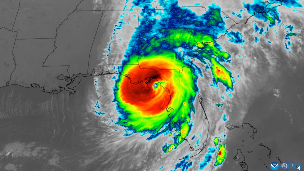Satellite view of Hurricane Helene about to make landfall in Florida's Big Bend region on Sept. 26, 2024.