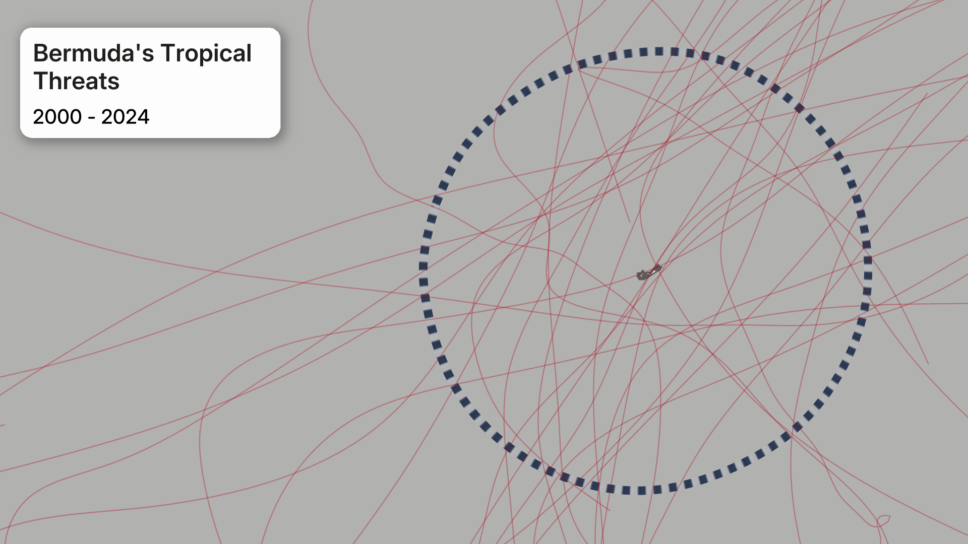 This map shows all of the tropical systems that have passed within 100 nautical miles of Bermuda since 2000.