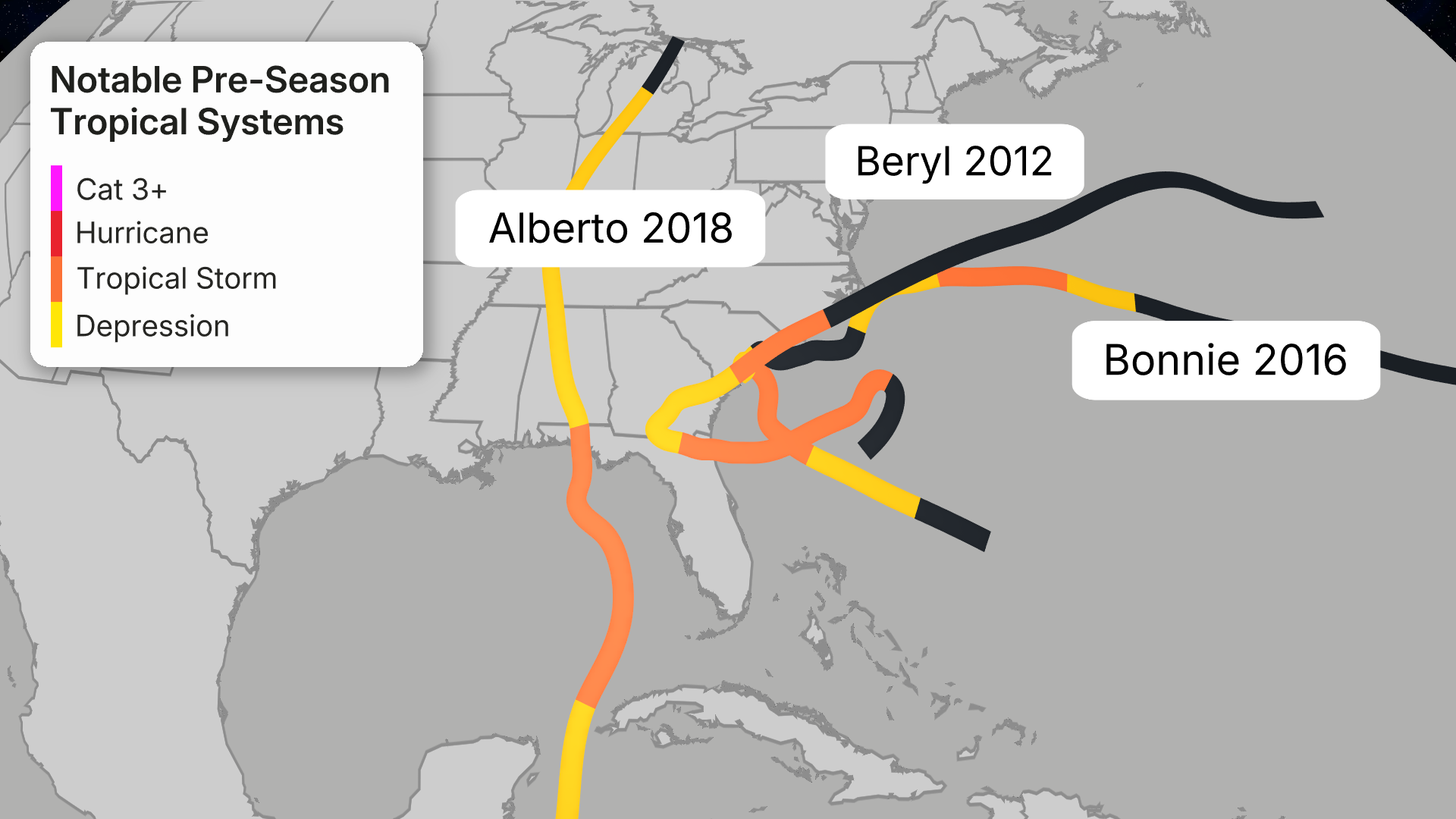 Tracks of Notable Pre-Season Storms