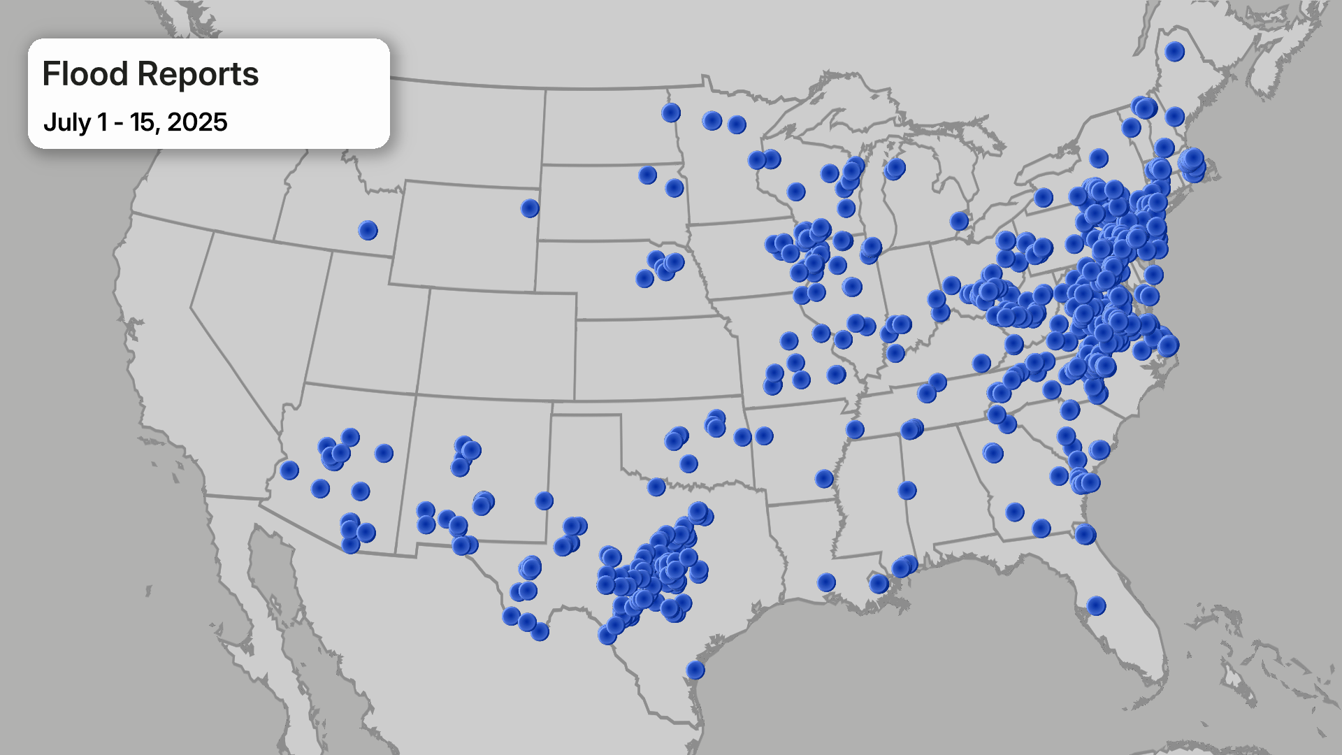 July has started with a flurry of flood reports from the mid-Atlantic to the Appalachians and across Texas. More than 1,200 reports of flooding that range from ponding to water up to the top of dwellings have been sent to the NWS.